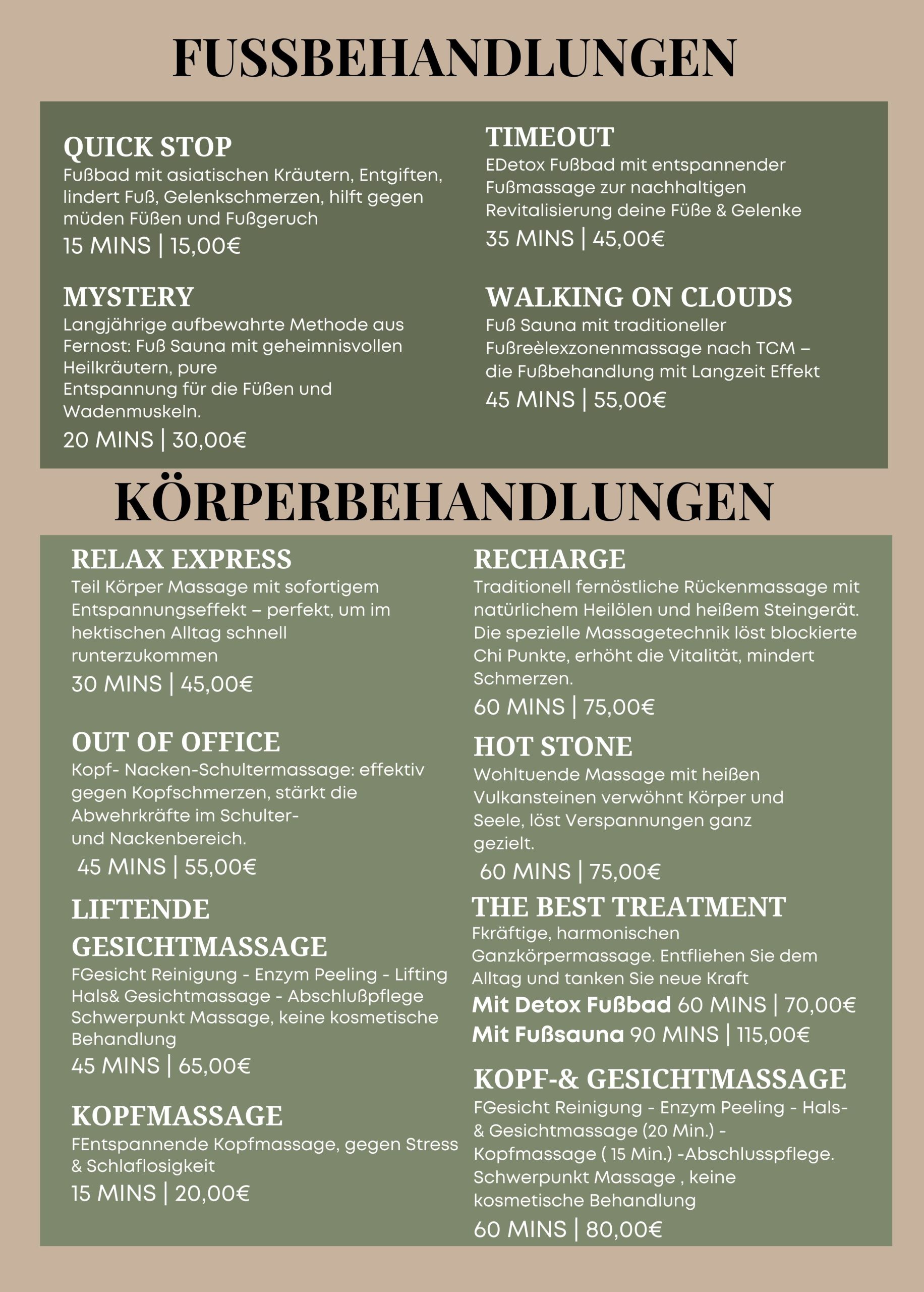 Die TCM-Massage im Tre Beauty & Spa basiert auf traditioneller chinesischer Medizin und aktiviert gezielt Akupressur- und Reflexpunkte entlang der Meridianlinien. Dies fördert den Fluss der Lebensenergie (Chi/Qi), unterstützt die Selbstheilungskräfte und sorgt für eine ganzheitliche Harmonie. In Kombination mit ätherischen Ölen, Hot Stones und Entspannungsmusik bietet die Massage eine tiefenentspannende Auszeit für Körper, Geist und Seele.