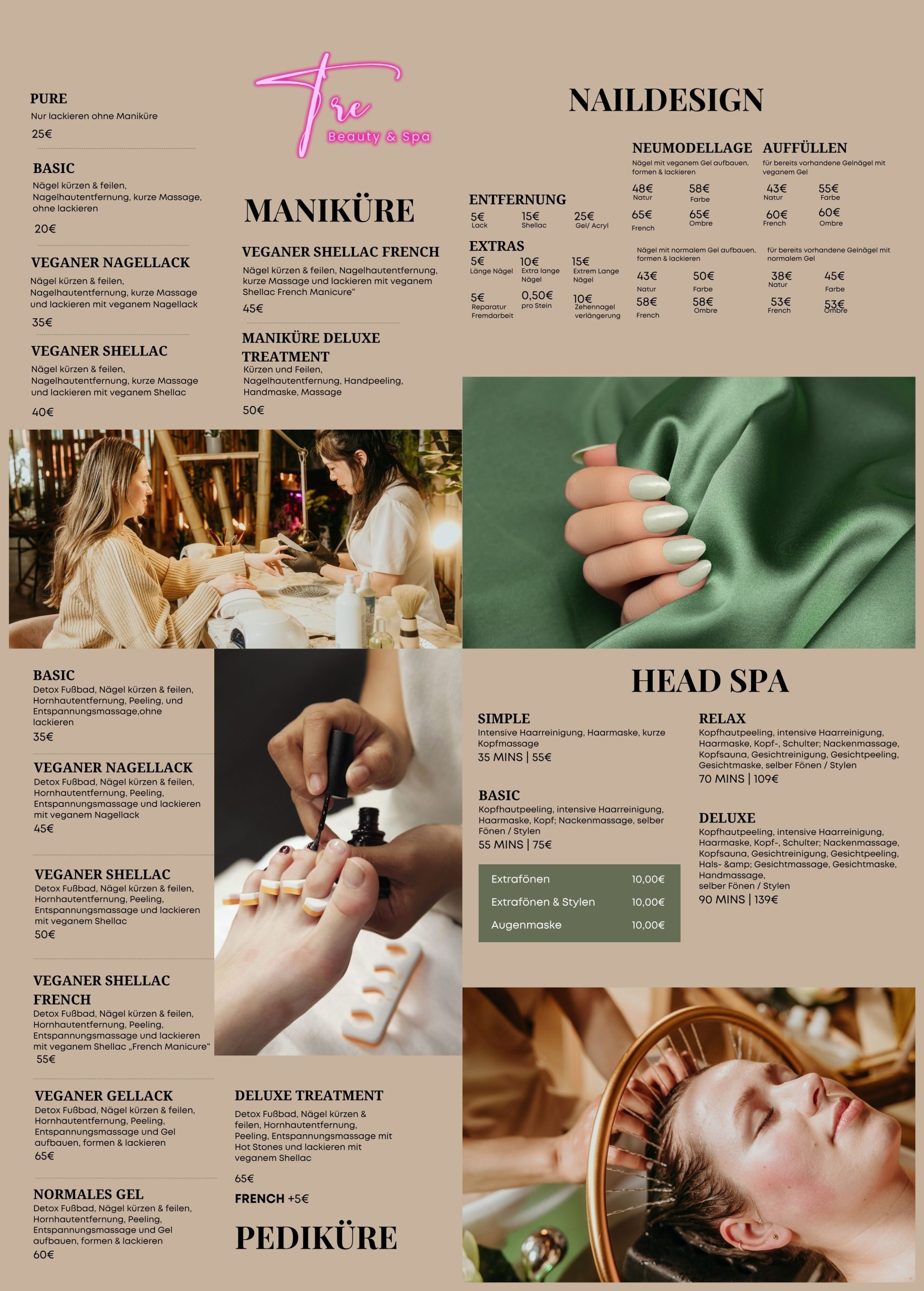 Tre Beauty & Spa bietet eine Vielzahl an hochwertigen Dienstleistungen, die darauf ausgerichtet sind, Ihnen ein Gefühl von Schönheit und Wohlbefinden zu schenken. Von entspannenden Massagen und pflegenden Gesichtsbehandlungen bis hin zu stilvollem Nageldesign und perfekter Wimpernverlängerung – bei uns stehen Ihre Wünsche im Mittelpunkt. Lassen Sie sich von unseren erfahrenen Experten verwöhnen und genießen Sie eine Auszeit in entspannter Atmosphäre.